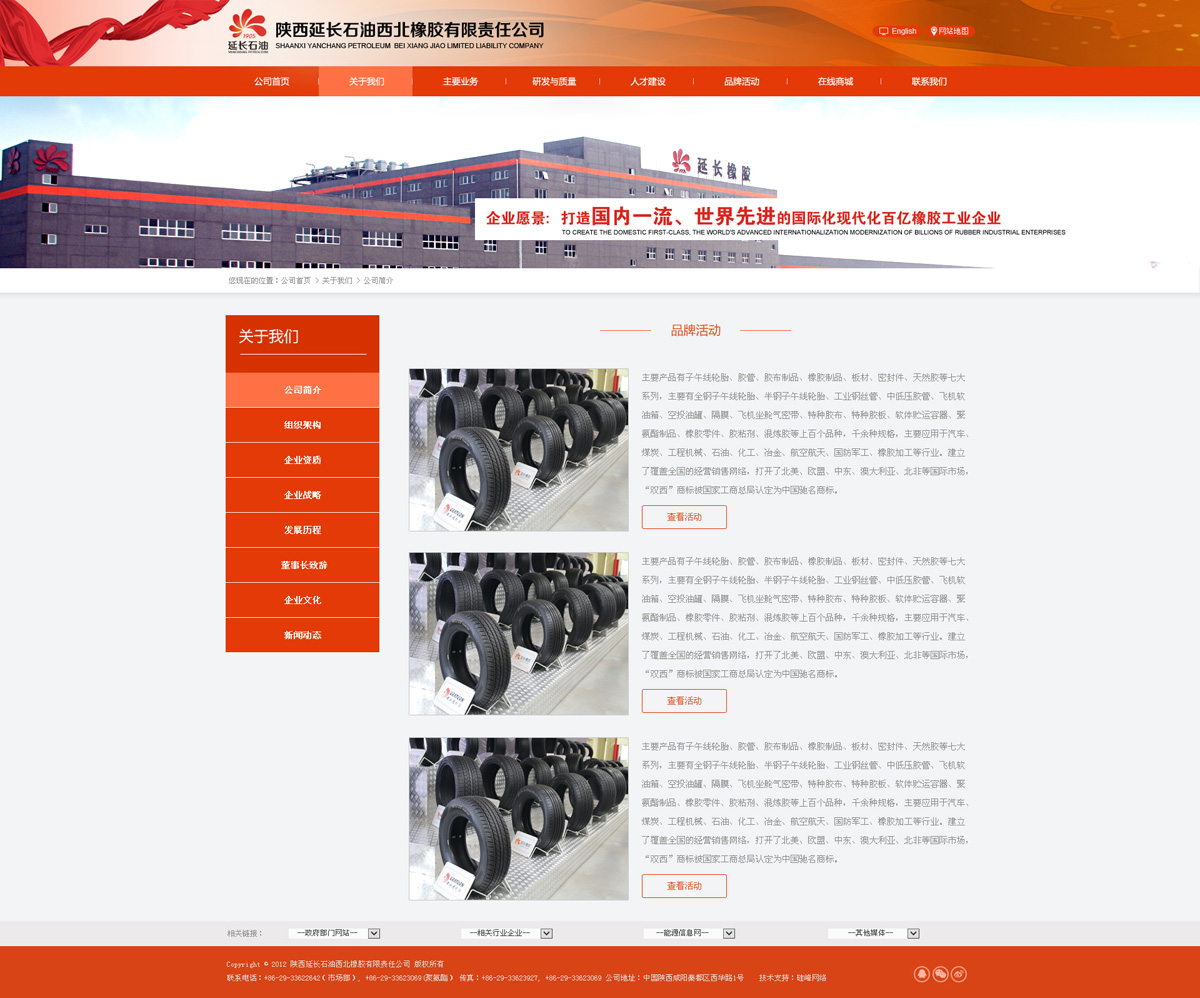 陜西延長(cháng)石油西北橡膠有限責任公司是陜西延長(cháng)石油(集團)有限責任公司的二級板塊公司,是全國唯一一家集天然膠種植與加工、子午線(xiàn)輪胎、橡膠制品制造銷(xiāo)售研發(fā)于一體的大型橡膠企業(yè)。位列中國膠管“十強企業(yè)”,中國橡膠制品“十強企業(yè)”,中國化工企業(yè)500強,中國橡膠工業(yè)百強企業(yè)第29位。